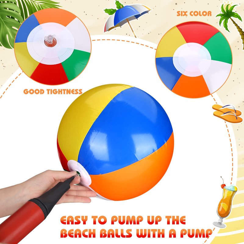 Maitys 12 Pieces of Beach Ball Decoration Rainbow Beach Ball with Hanging Rope and Hooks Inflatable Pool Ball Blow up Sport Ball for Summer Games Hawaiian Party Ornament