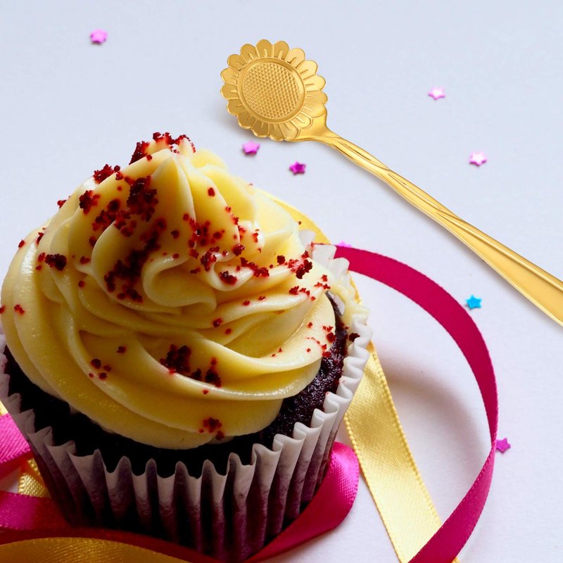 Maitys 16 Pieces Stainless Steel Flower Coffee Spoon Dessert Spoon Sugar Spoon Ice Cream Spoon Stirring Spoon Tea Spoon Milkshake Spoon Set for Tableware Kitchen, Cafe or Bar (Gold)
