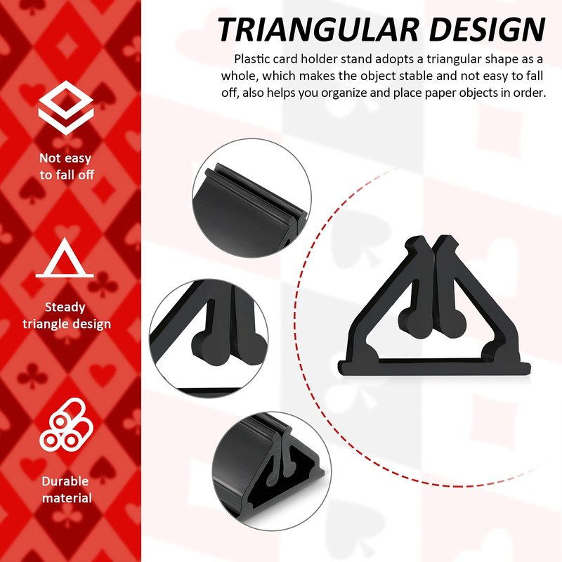 - Triangular design: plastic card holder stand adopts a triangular shape as a whole, which makes the object stable and not easy to fall off, also helps you organize and place paper objects in order