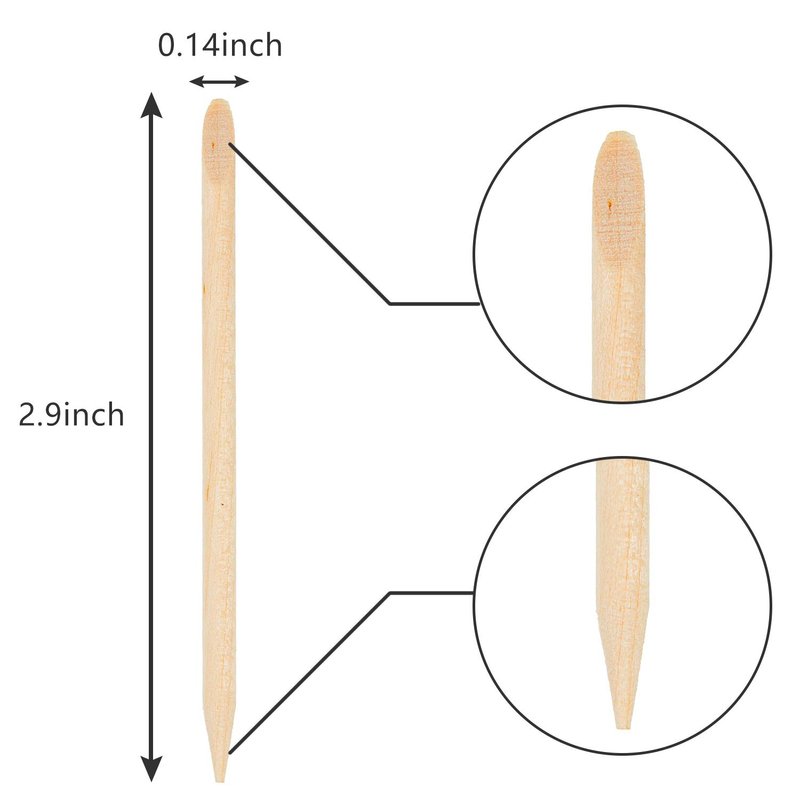 - Practical design: each wood nail stick for nails has 2 ends, one is a flat end and the other is a pointed end which is not pointed to avoid damage to the nails, the pointed end can help clean the nail polish on the outside of the nail and other narrow areas, the flat end can be applied to clean the nail and push it back to the epidermis