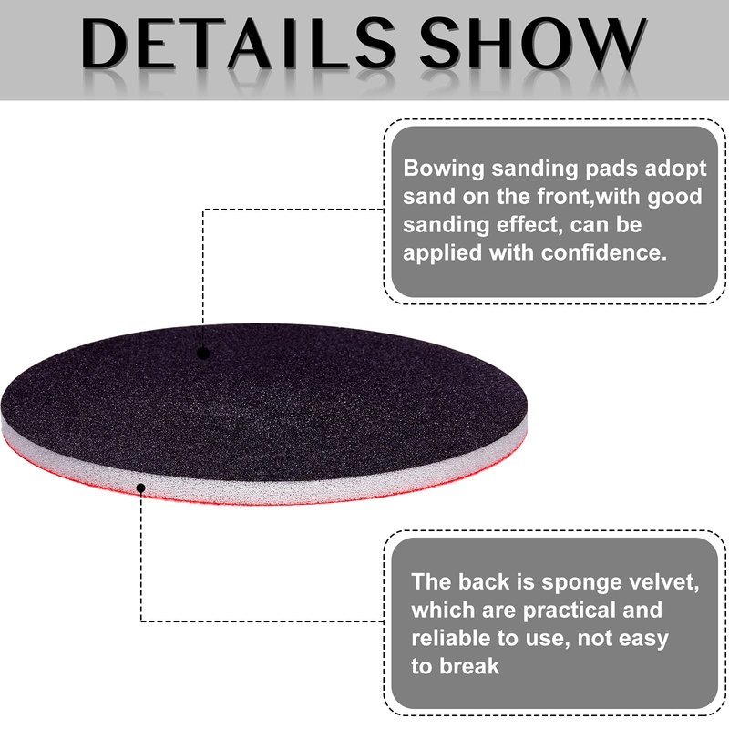 - Quality and reliable: these bowing sanding pads adopt sand on the front, while is designed with sponge velvet, quality and reliable, with good sanding effect, can be applied with confidence
