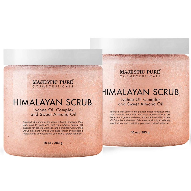 - A Massage Body Scrub – MAJESTIC PURE Himalayan Salt Scrub is formulated with powerful Natural Ingredients including Lychee berry, Sweet Almond Oil, and various Nutrients for their benefits on skin. Lychee Berry Oil has a soft, delicate scent and is rich in antioxidants and Vitamin C. MAJESTIC PURE Salt Scrub Detoxifies & Hydrates skin while containing No Harmful Chemicals. It can be used by Men & Women