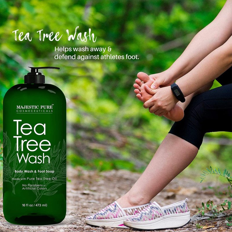 - MAJESTIC PURE Maximum Strength Tea Tree Oil Soap / Body Wash: Foot and Body Wash is paraben-free; no harmful chemicals; made in USA