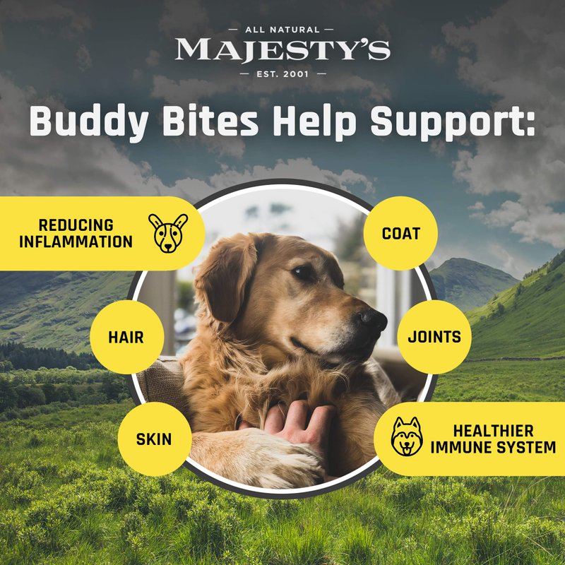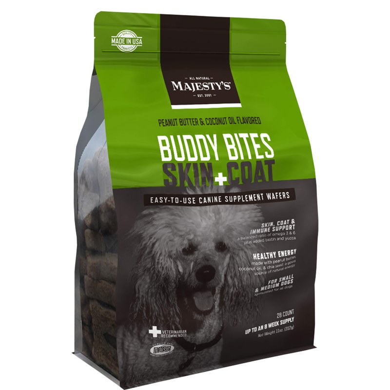 Majesty's Buddy Bites Skin and Coat Wafers for Small / Medium Dogs - Superior Skin, Coat, and Immune Support Supplement - Peanut Butter and Coconut Oil Flavored - 1 Pack (28 Count)