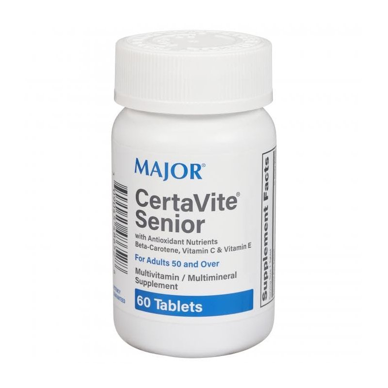 Major CertaVite Senior Multivitamin / Multimineral Supplement with Antioxidant Nutrients Beta-Carotene, Vitamin C, & Vitamin E For Adults 50 & Over - 60 Tablets