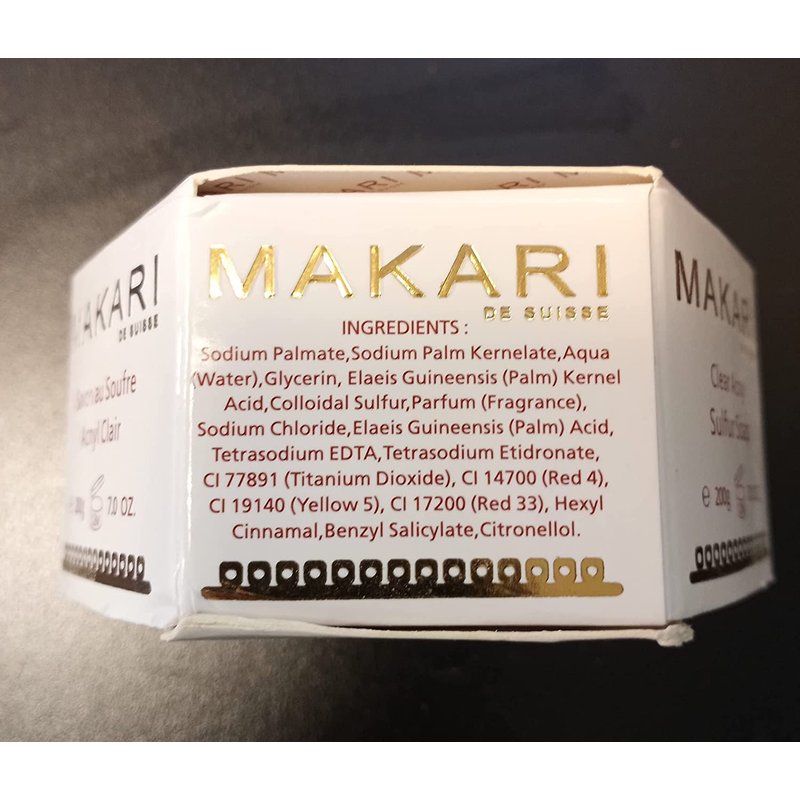 CLASSIC, EFFECTIVE SOAP FOR FIGHTING ACNE Makari Classic Acnyl Sulfur Soap is an anti-acne bar soap that helps you fight acne, pimples, whiteheads, and blackheads, and helps prevent them from building up again. It’s a potent cleanser for unclogging skin pores and controlling the production of face oils. Enjoy clearer skin after regular use and say goodbye to your old blemishes. DEEP-CLEANING ACTION Our anti-acne soap naturally exfoliates your oldest skin cells and dead skin cells as you cleanse your face. It also detoxifies your dermis by removing dirt, oil buildup, and foreign bodies. You can feel the difference in a thoroughly cleansed face. It’s an excellent aid for keeping your skin crystal clean and free of unpleasantness. REMOVES AND CONTROLS SEBUM BUILDUP Your skin naturally lubricates itself and produces sebum oils as part of this process. Unfortunately, you can get too much of a good thing. Sebum can build up, harden, and clog your pores. Our sulfur soap helps you break down and remove the buildup of sebum so you can keep your pores healthy and your face clearer of acne and pimples. It also helps control the production of skin oils so you can avoid further buildup of excess sebum. UNVEIL YOUR SKIN’S NATURAL GLOW Exfoliation can help get rid of old skin cells and make room for new ones. You may begin to see visible results within the first few weeks of using our sulfur soap bar as it reveals your natural radiance underneath. MAKE IT PART OF A DAILY SKINCARE ROUTINE For best results, we recommend using it every morning and evening for oily or acne-prone skin. Simply massage gently in circular motions and rinse. We recommend using it once or twice a week only for sensitive skin that’s acne-prone. Get your Makari Classic Acnyl Sulfur Soap today and start enjoying cleaner, clearer, and smoother skin.