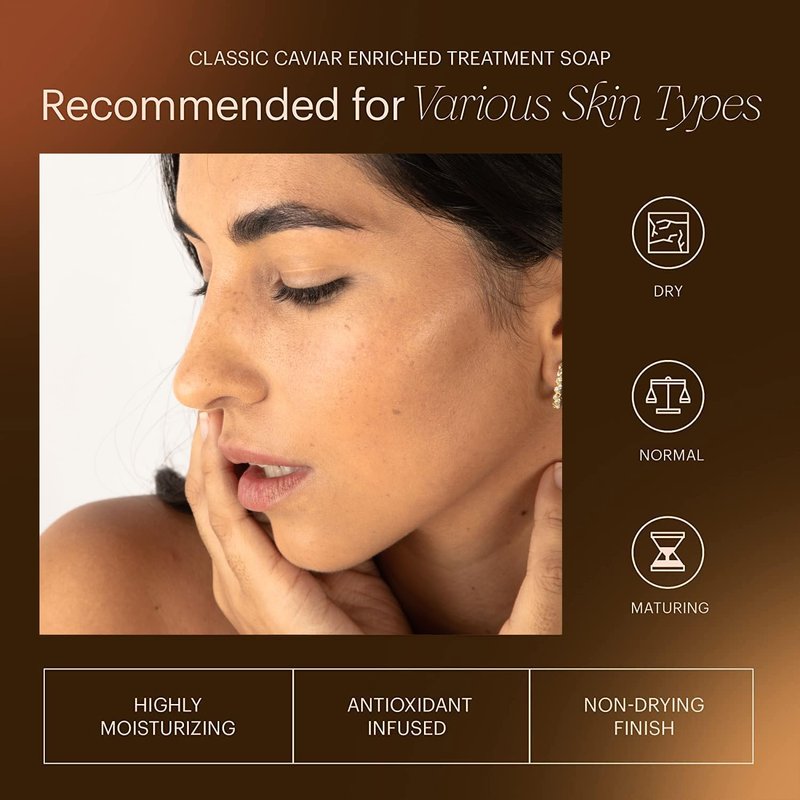 - INTENSE HYDRATING CLEANSER: Our Classic Caviar Enriched Treatment Soap is a moisture-boosting bar that intensely nourishes skin. Our moisturizing soap has a non-drying finish, great for dry, normal, and maturing skin types.
