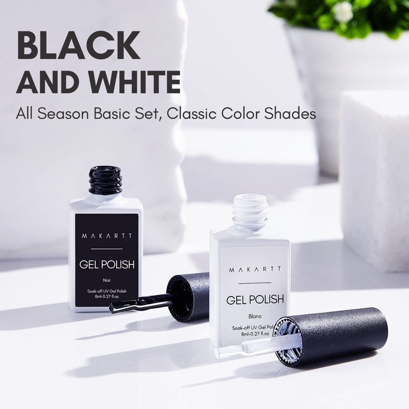 Makartt Gel Nail Polish Kit, Black White Nail Polish Gel Set Noir & Blanc Summer Soak Off Nail Gel Polish LED Required UV Gel Polish Kit Black Nails White Gel Paint for Nail Art Salon DIY 2Pcs