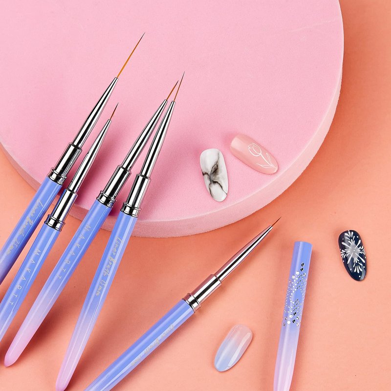 Makartt Nail Art Brushes,Liner for Nails, 5pcs, 7/9/11/15/25mm, Easy Hold, Thin Nail Art Design Brush Detail Brush for Gel Polish Nail Paintings Different Lines 3D Nail Pattern French Tips Nail Tool