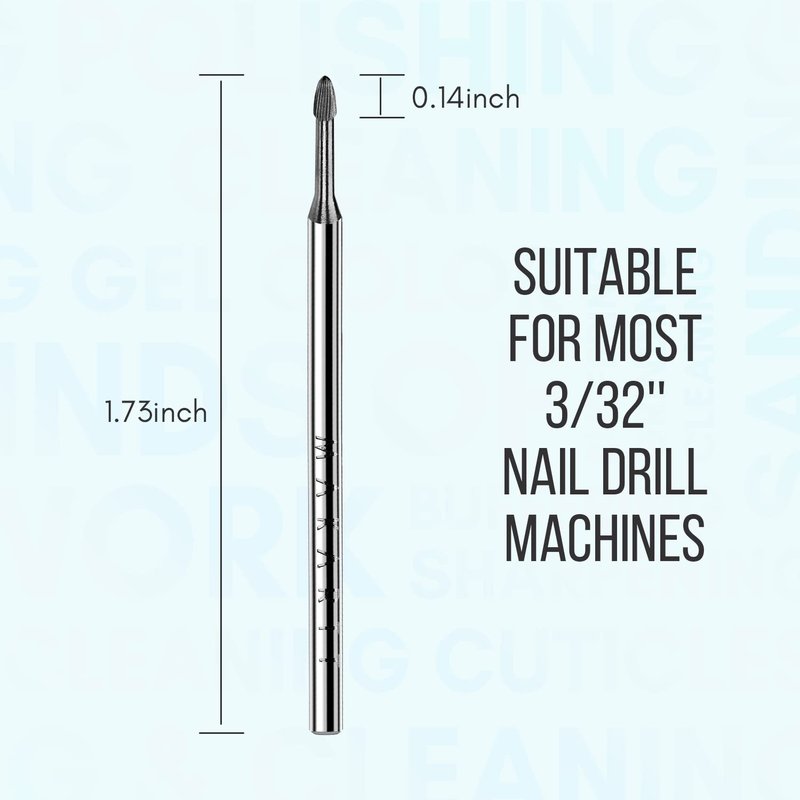 - High-Quality Tungsten Carbide Bit for Nails: Made of premium strength tungsten carbide material with precision workmanship, this high-precision machining nail bit comes with excellent heat dissipation, low vibration, low noise, and long service life. Perfect manicure preparation tool for nail salons and professional nail techs.
