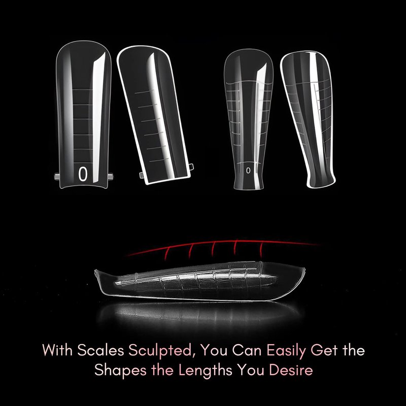 - [Perfect Length and Shape with Scale]- The XL length and full cover nail shape of the false nail forms enable you to create short, medium, long or extra-long gel nail extensions with the help of the sculpted scales on the nail tips. And you can sculpt the nail gel or trim the gel nails to coffin shape, almond nails, square nail,oval or stiletto nails as you expect.