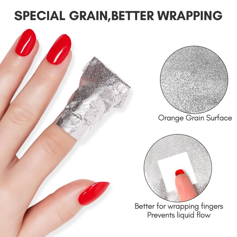 - Upgraded Embossed Foil Sheets: The unique embossed design enhances durability and flexibility, allowing the foil to conform to the nail's shape without sticking or tearing. This design helps prevent slippage during the soak-off process.