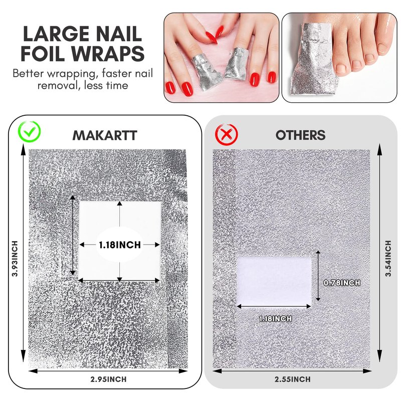 - Large Size Foil Nail Wraps: Each pad measures 1.18 x 1.18 inches, designed to fit all finger and toenails. The thick, long foils are easy to wrap around nails, holding polish remover securely to effectively remove gel polish.