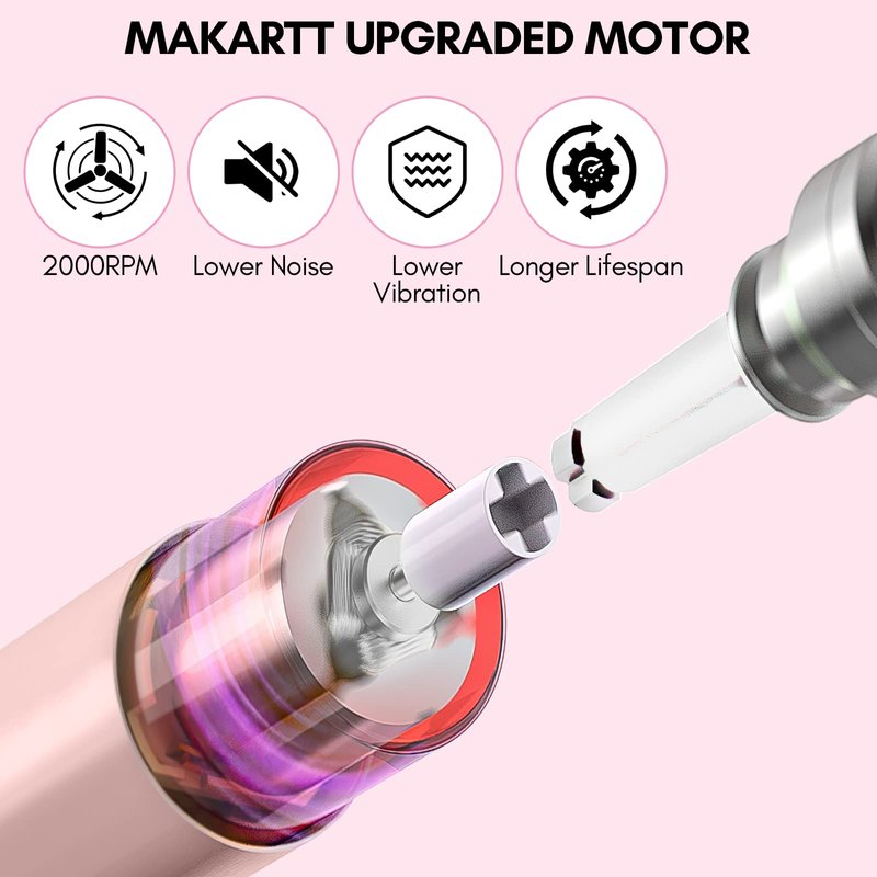 - Multifunctional Nail File Drill Kit: Comes with pink 20000RPM portable acrylic drill machine; 6pcs 3/32” nail drill bits, 6 sanding bands and1 USB power cords. Eirenee electric nail drill is a staple to any Makartt nail drill bits for multi-faceted use, including grinding, buffering, cutting, polishing, removing for acrylic nails, poly gel nails, artificial extension nails, thick nails, dip powder, fake nails, natural nails, and cuticle dead skin.
