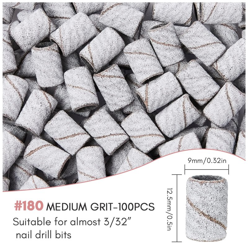 Makartt 100pcs Sanding Bands Set For Nail Drill Bits, #180 Medium Grits