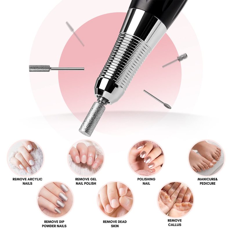 - USB Type & Portable Size: This e-filer nail drill kit with a standard USB interface, you can connect to any USB device, like power bank, laptop or USB adapter (included in package). Lightweight and compact pen size designs, Convenient to carry out and use it anywhere you need.