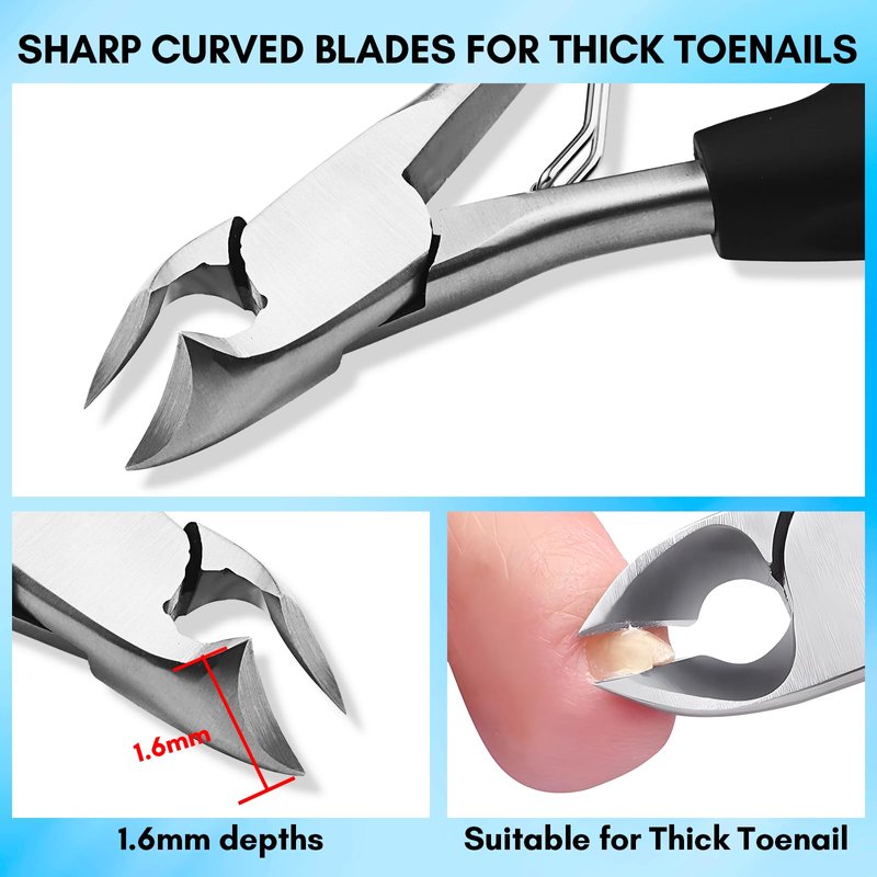 - Black Deep Curved Toe Plier - This toe nail clippers for men 1.2 mm deep arch with a 15˚ degree crescent part offers an ideal technique to reduce ingrown sharp edges, it is perfect to dig deep into paronychia to reduce normal and thick toenails effortlessly.
