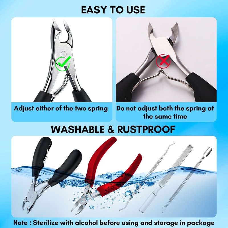 - Upgraded Technology - The toenail clippers for thick nails are made with ABS material that is non-slip,double spring& softer, use an ergonomic handle for comfort, firm grip & easy cutting. Easy to use, rust-proof and water-proof