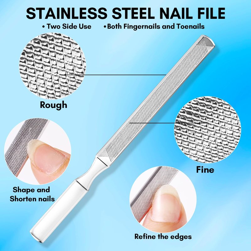 - 5 In 1 Pedicure Kit - Makartt nail clipper set consists of 5 tools, 1*Wide Jaw Opening Nail Clipper, 1*Podiatrist Toenail Clippers, 1* Stainless Steel Nail File, 1*Nail Cuticle Pushers, 1*Toenail Lifter. Meet your different nail trimmer needs, keeping your feet healthy without pain and nail fungus.
