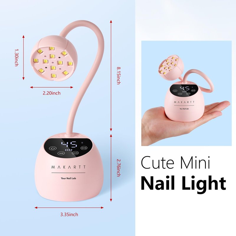 - 360° Degree Adjustable Direction: Makartt UV nail lamp features a flexible gooseneck, allowing you to bend and maneuver it to any angle for optimal curing. It ensures full coverage of gel nails, including hard-to-reach areas like your pinkies and thumbs, for flawless results every time.