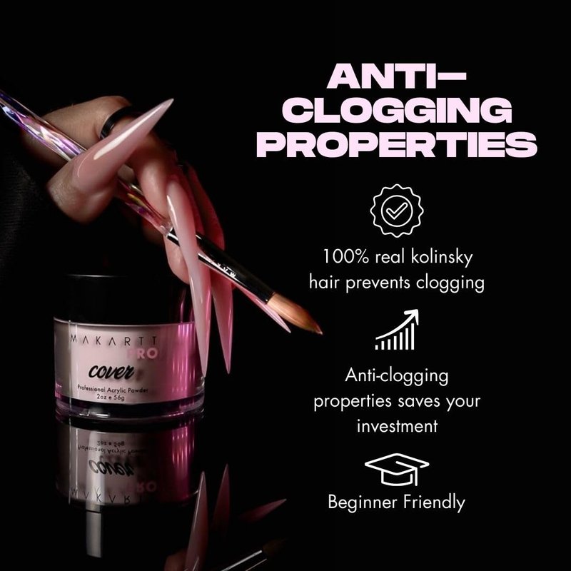 - Anti-Clogging Properties: Our professional acrylic brushes are made with pure kolinsky hair, which is necessary for keeping your nail brushes unclogged with acrylic.