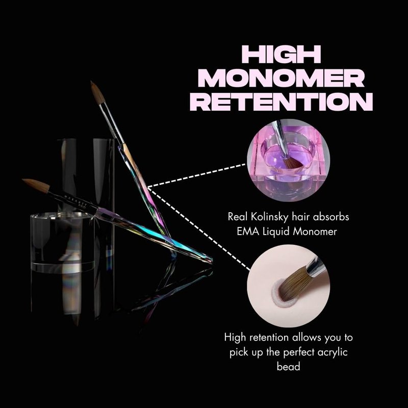 - Acrylic Powder and Monomer Compatibility: This acrylic nail brush is compatible with acrylic nail powder and EMA Liquid Monomer.