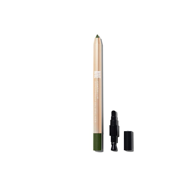 MAKE Continuum waterproof eyeliner is available in 12 shades. This Gamma Ray gel liner is an intense dark green eyeliner pencil. For best results, twist the eyeliner to reveal a small amount of lead and glide along the lash line and water line to define eyes, or blend out for an alluring smoky eye effect.