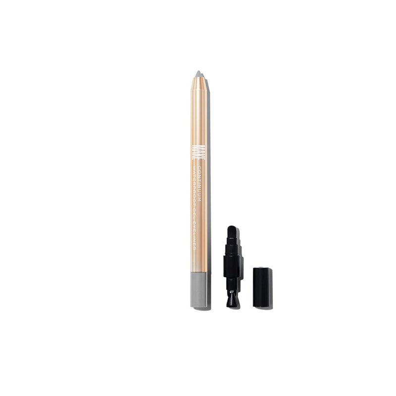 MAKE Continuum waterproof eyeliner is available in 12 shades. This Interstellar gel liner is a modern silver eyeliner pencil. For best results, twist the eyeliner to reveal a small amount of lead and glide along the lash line and water line to define eyes, or blend out for an alluring smoky eye effect.