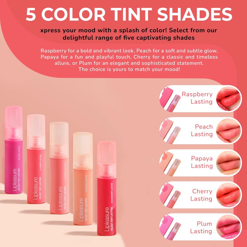 - MATTE LIP TINT: Indulge in the luxurious sensation of Lipleasure Velvet Tints that glide on your lips like velvet, imparting a smooth and moisturizing application that feels like a delightful melt-in-your-lips experience, leaving no unwanted stains behind.
