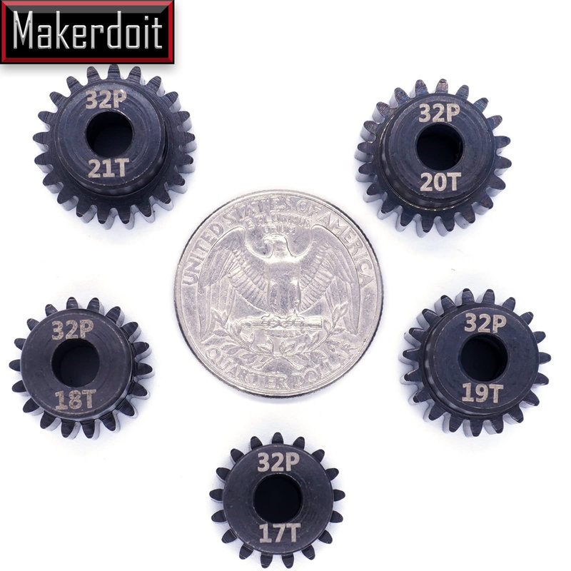 MakerDoIt 32P 5mm Pinion Gear Set 17T 18T 19T 20T 21T with Hex Key for RC