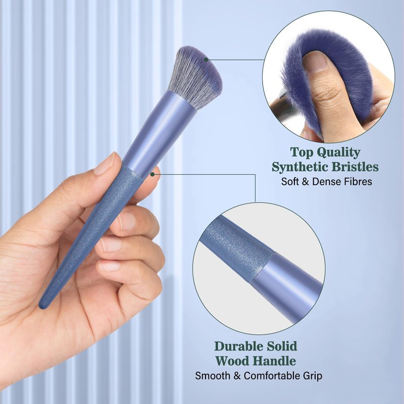 - Comfortable & Soft - The brush set uses high-density fiber bristles with a soft and delicate touch. The bristles are rich and fluffy, resistant to shedding, and grip powder well, spreading it evenly on the face for a natural look without causing skin irritation.