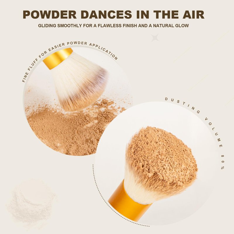 - CRUELTY-FREE SYNTHETIC FIBER BRISTLES: Soft synthetic bristles, high-quality aluminum ferrules, and wooden handles, easy to hold and control while applying makeup. The bristles are rich, soft and fluffy, and will not fall off easily. They can better grasp the powder and spread evenly on the face, which not only makes your makeup more natural, but also gentle and non-irritating to the skin.