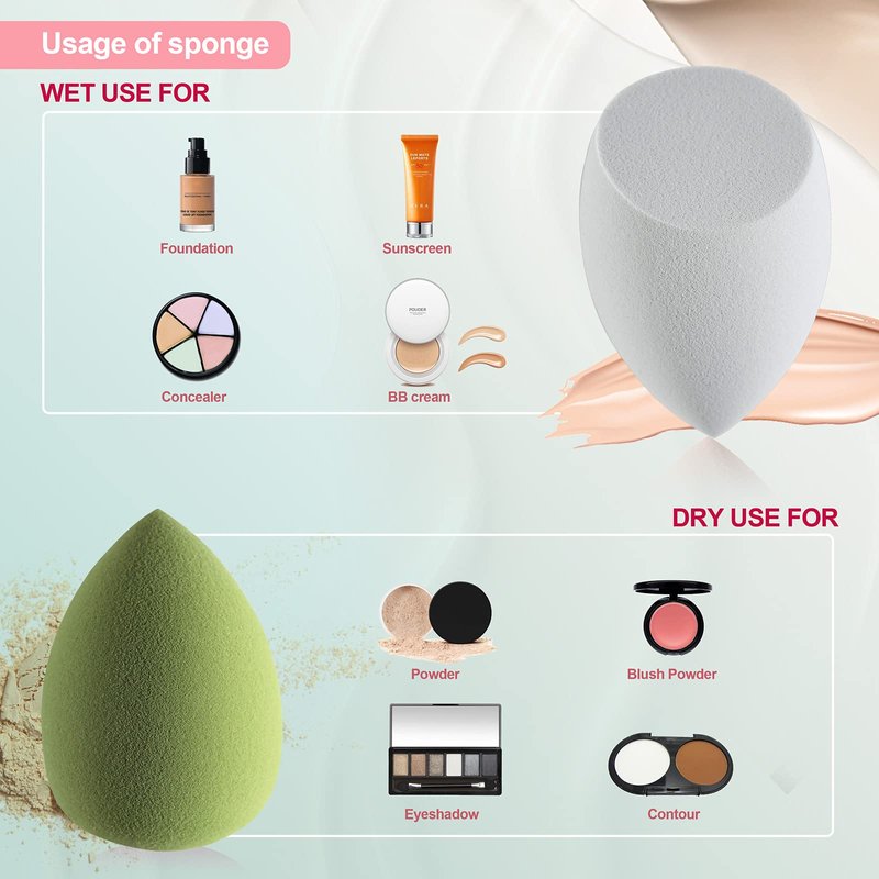 - Foundation Sponge: 360°makeup effortless, Various round beveled face types, with pointed tips, flat edges, and rounded sides. This versatile makeup sponge is very suitable for the face, neck, nose, corners of eyes, etc. contour. The flawless beveled surface design can absorb oil from the skin. The soft texture of the foundation sponge can make your makeup look natural.