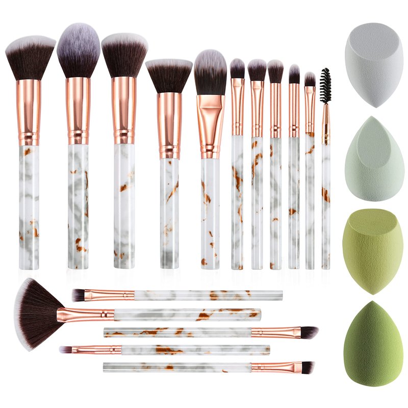 - Comprehensive Makeup Brush Set : This set includes 16 pcs make up brushes and 4 pcs makeup sponges . It well apply foundation, blending blush, highlight , eyeliner & Face Powder. Perfect for beginners and makeup lovers.