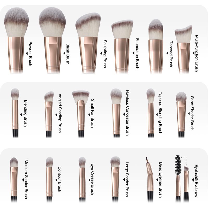 - Stylish Professional makeup brush: The makeup brush set looks very chic and stylish in the most popular and modern colors, it will be a must-have in your makeup bag. Each makeup brush has its own function, so you don't need to use one brush for multiple purposes.