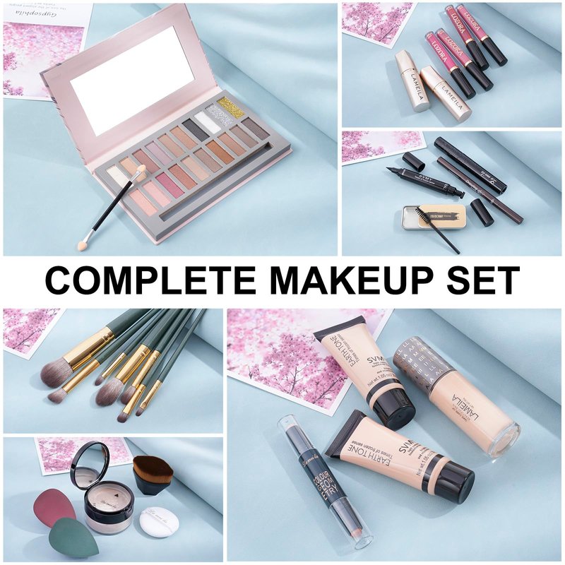 - All-In-One Makeup Set Includes a variety of shades and styles so you can find the perfect look for you. This makeup includes an 20-color eyeshadow palette, star mascara, primer, lip gloss, lipstick, foundation, dual-ended concealer, setting powder, star eyeliner, lipstick and more. The most thoughtful gift for your loved ones. All female essentials in one elegant box, the perfect gift for any occasion.