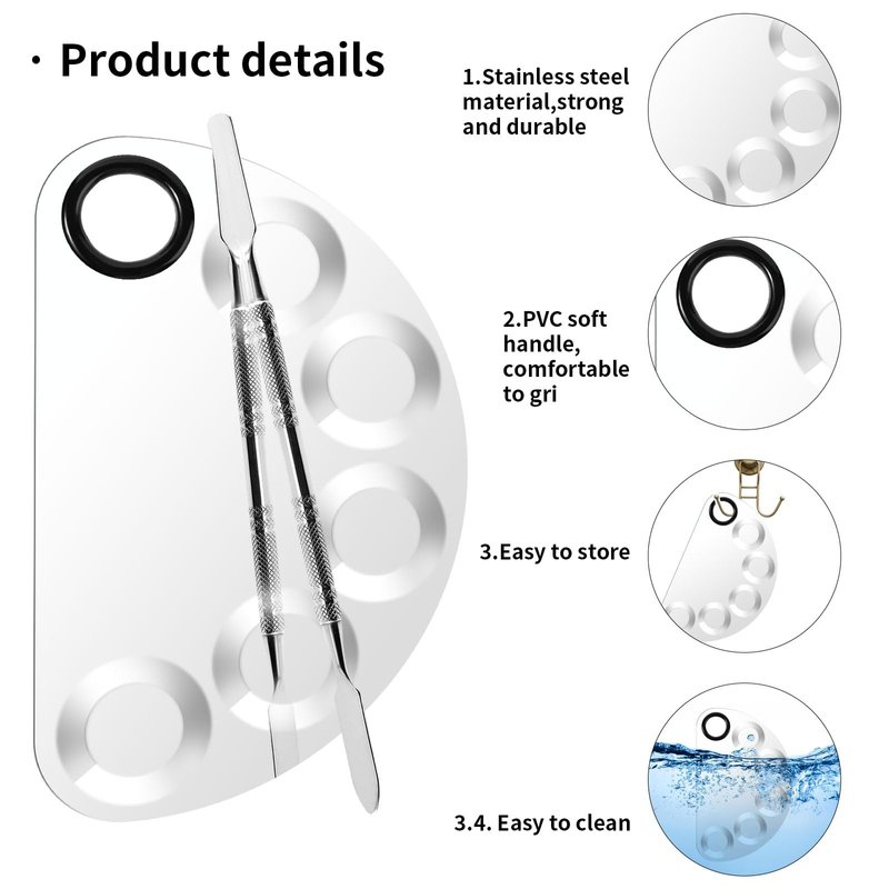 - Makeup Palette Material: This makeup mixing palette is made of high-quality stainless steel, with a smooth surface and no barbs, rust-proof, a hard texture, not easily deformed, not easy to stain, easy to clean, and can be reused for a long time.