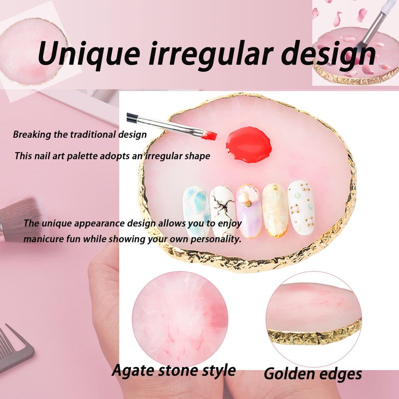 - đ ăEnvironmentally friendly and durable resin materialăThese nail art palettes are made of high-quality resin material, which is not only environmentally friendly and safe, but also sturdy and durable. Itâs also extremely easy to clean, with a simple wipe to restore cleanliness. The edges are sealed with smooth gold edges to effectively prevent scratches, making your use more comfortable and keeping your hands safe.