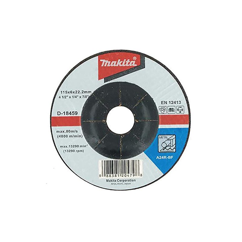 10 (TEN) GRINDING WHEELS INCLUDED | Optimize your metal grinding work with these 10 Makita Premium 4-1/2” Grinding Wheels for Metal, at a 15-30-degree angle, to the work surface, applying the proper amount of pressure to allow the grinding wheel to do the work. For best results, consider not pushing too hard on the wheel, which can cause the grinder to stall or kick back or give a less efficient grinding action, while also increasing the chances of slippage or loss of control of the tool, resulting in injury or damage. Applying light to moderate pressure and consistent movement will provide the most efficient grind and minimize heat build-up. Consider using light pressure and a consistent motion throughout the grind for the fastest grind-rate and prolonged wheel life. Excessive pressure through the grind causes increased friction and heat build-up, which can cause increased heat discoloration of the work piece and reduced wheel life.For demanding applications, higher amperage &/or torque angle grinders provide easier, long-lasting & efficient grinds.