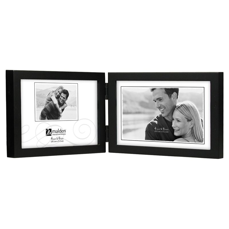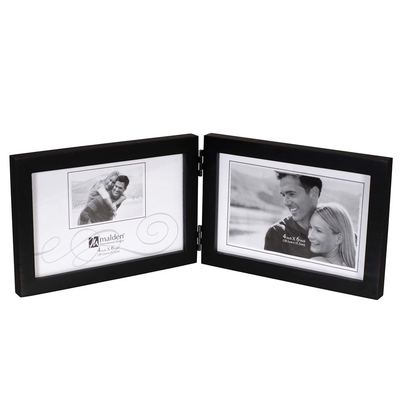 - ALLURING LOOK: This black decorative hinged frame has a smooth matte finish; holds two 4 x 6 inch horizontal photos in 3.5 x 5.5 inch display openings. Overall dimensions: 13.625” (W) x 4.75“ (H) x 0.625” (D)