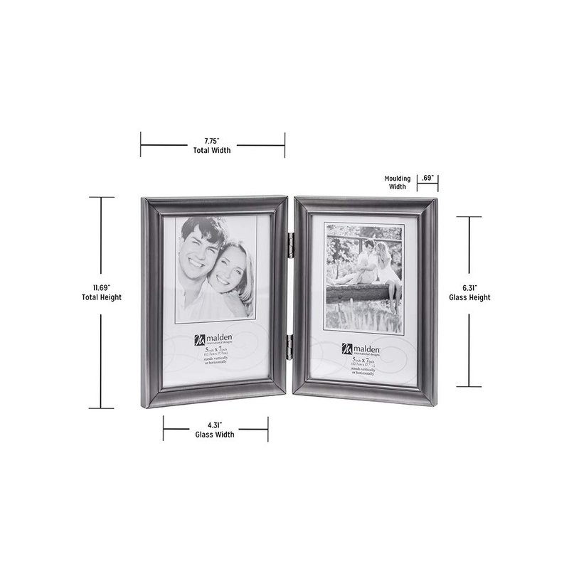 - PERFECT FOR EVERY APPLICATION: Showcase your treasured photos with Malden’s sleek and stylish double 5x7 pewter metal Picture Frame. Attractive design, perfect for any home or the office, this frame is guaranteed to add new life to your space. Also makes a great gift for birthdays, holidays and more!