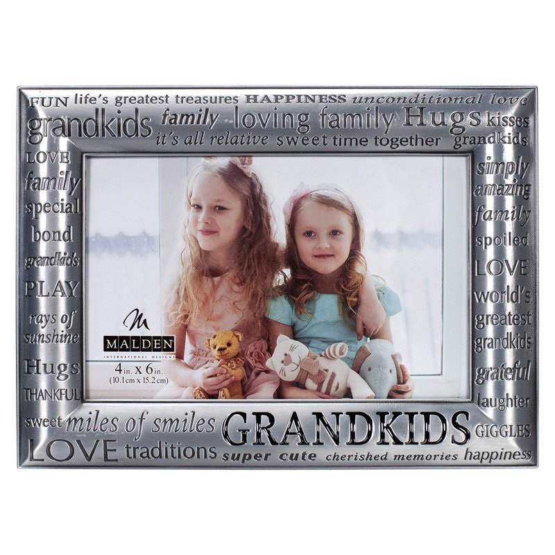 Malden International Designs Modern Pewter Metal Diecast Grandkids Expressions Picture Frame, 4x6, Silver