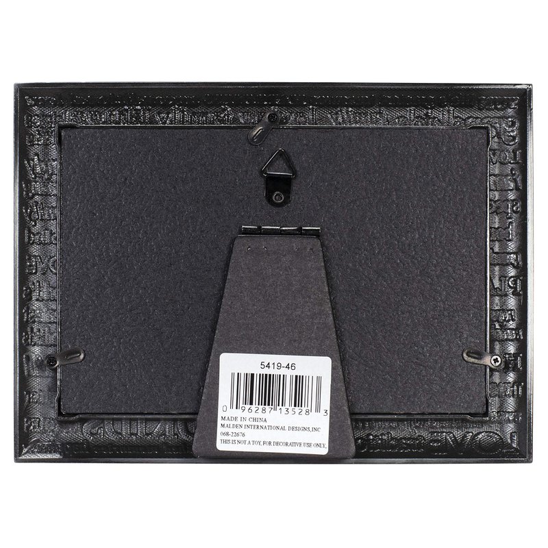 - PREMIUM QUALITY MATERIALS: This photo frame is constructed of dimensional Pewter Finish Diecast Metal. Freestanding, easel backed picture frame. Change photos easily with swing tab closures. Attached hardware makes wall hanging easy. Durable glass front will protect and showcase your precious photos