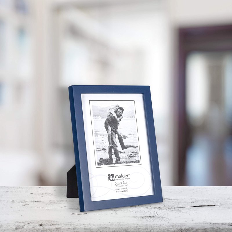 - ALLURING LOOK: This navy decorative frame has a smooth matte finish; holds a 5x7 inch photo in a 4.5x6.5 inch display opening; vertical or horizontal photos. Overall dimensions: 5.75” (W) x 7.75“ (H) x 0.75” (D)