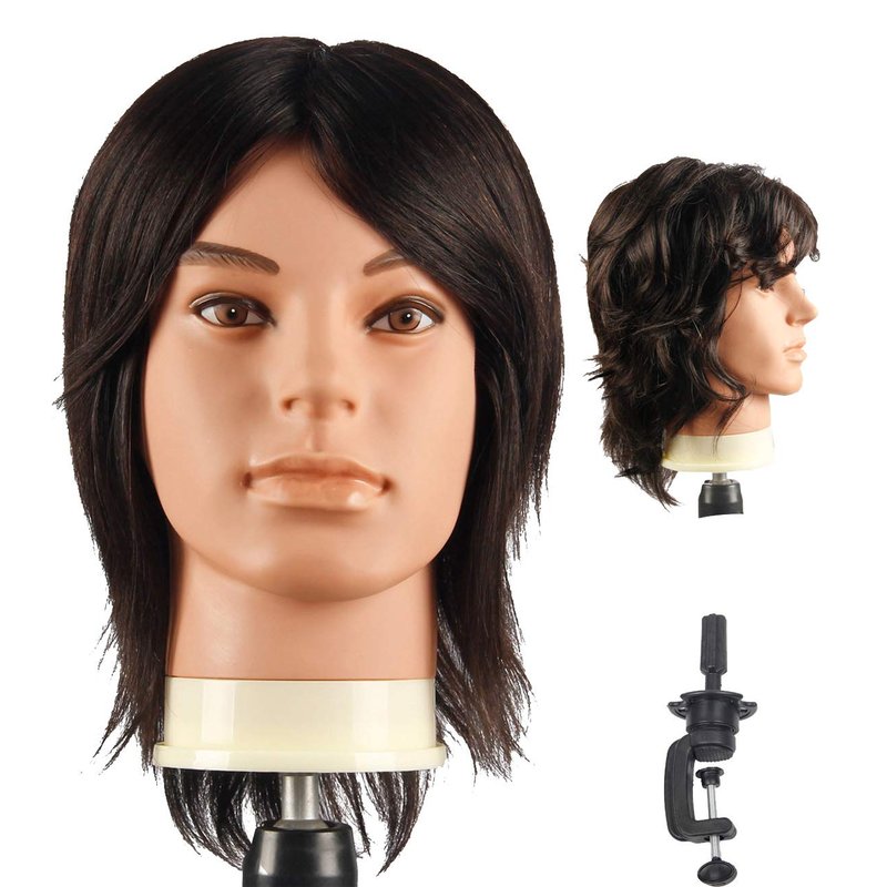 Male Mannequin Head With 100% Human Hair Cosmetology Manikin head for Cutting Styling With Doll Head for Hair Styling with Clamp Stand