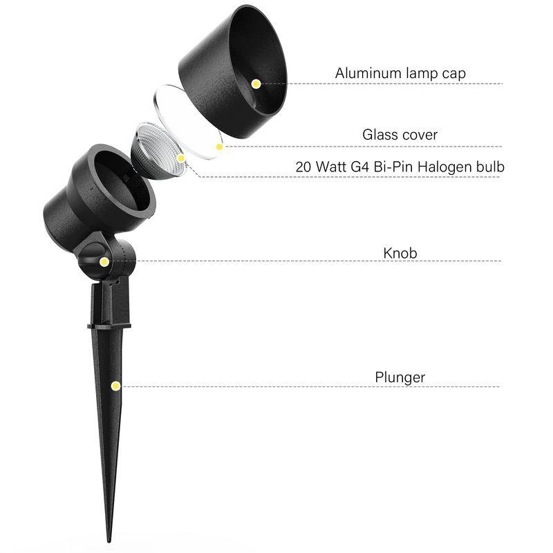Malibu Low Voltage Landscape Lighting 20W Outdoor Spotlight G4 Halogen Bulb Weatherproof Lights for Low Voltage Landscape Lighting Floodlight Driveway, Yard, Lawn, Flood, Garden