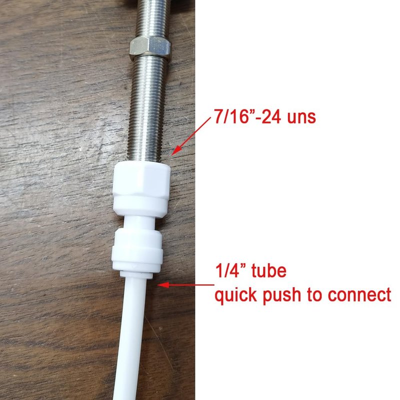 - 1/4" Tube OD x 7/16"-24 UNS Quick Connect Fitting Fits Standard 1/4" o.d. Tubing Used on Most RO water beer Systems.