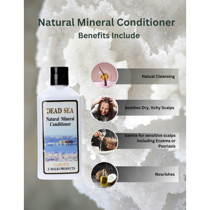Malki Dead Sea Products Natural Mineral Conditioner | Dead Sea Conditioner for Itchy Scalp | Eczema and Psoriasis Support, Paraben Free, Softening, Detangling, and Hydrating, Itchy Scalp Conditioner