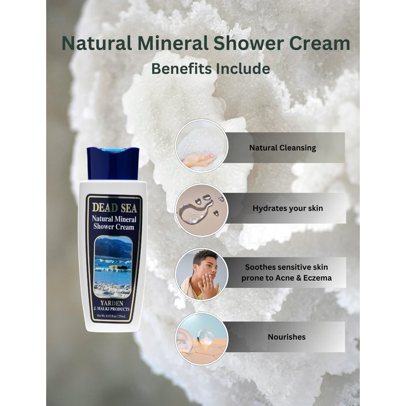 Malki Dead Sea Products Natural Mineral Shower Cream Body Wash | SLS-Free, Vegan-Friendly, Skin-Revitalizing Formula | Soothes Eczema, Psoriasis, and Acne Conditions | Dead Sea Products