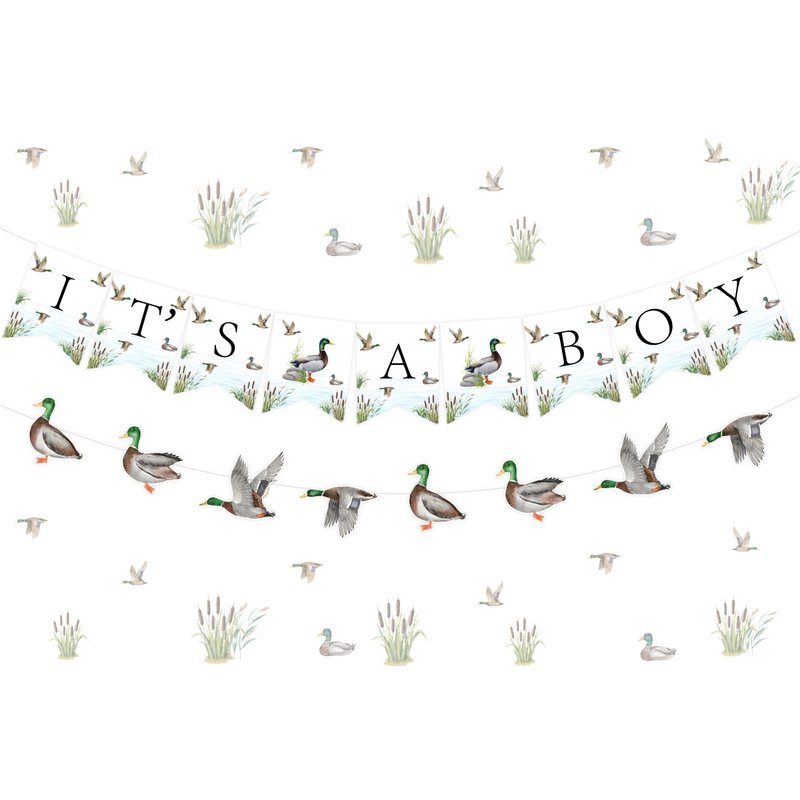 Package Includes: 1 x “IT’S A BOY” banner 1 x mallard duck garland Material: Cardstock Color: green, brown and white